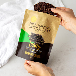 What’s not to love about chocolate paired with mint? Our crispy mint dark chocolate bark is a combination of velvety smooth 53% dark couverture chocolate with natural mint and crispy quinoa. YUMMY!